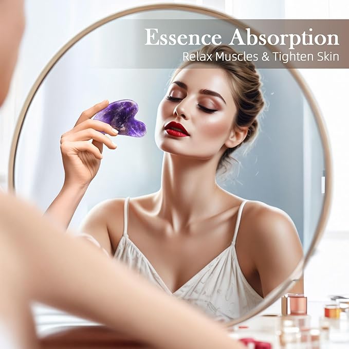 - Energizing Skincare: The guasha stone is a nice tool for facial massage. It can relax your facial tissue and awaken facial skin, help your skin absorb your skin absorb the cream or lotion faster and more fully