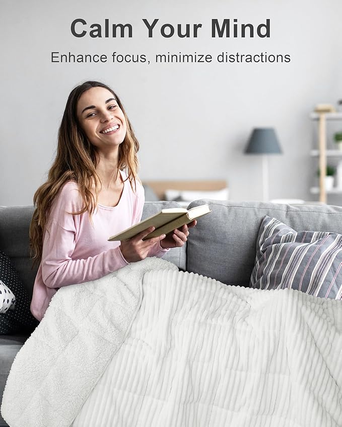 - Premium Weighted Blanket: Striped Sherpa weighted blanket is made of 240gsm flannel with newest ribbed stripes. Layered texture offers a smooth velvety touch with ultimate gentleness and warmth. 220gsm same-color Sherpa reverse is super fluffy and cloud-soft with multiple levels of cozy softness. Sleeping and napping in its snuggles gives a breezy feel like in the gentlest embraces
