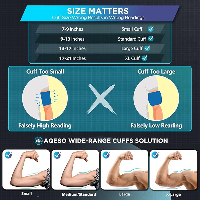 - Accurate & Fast Reading - AQESO automatic blood pressure cuffs use advanced oscillometric technology for accurate, consistent results. The easy-to-read WHO classification bar helps you understand your readings with confidence.