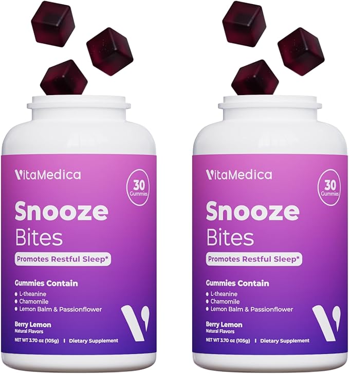 VitaMedica Snooze Sleep Gummies - Melatonin-Free, Zero Grogginess - L-Theanine, Chamomile, Passionflower & Lemon Balm - Sleep Aid Gummies for Adults - 60 Count (2 Pack)