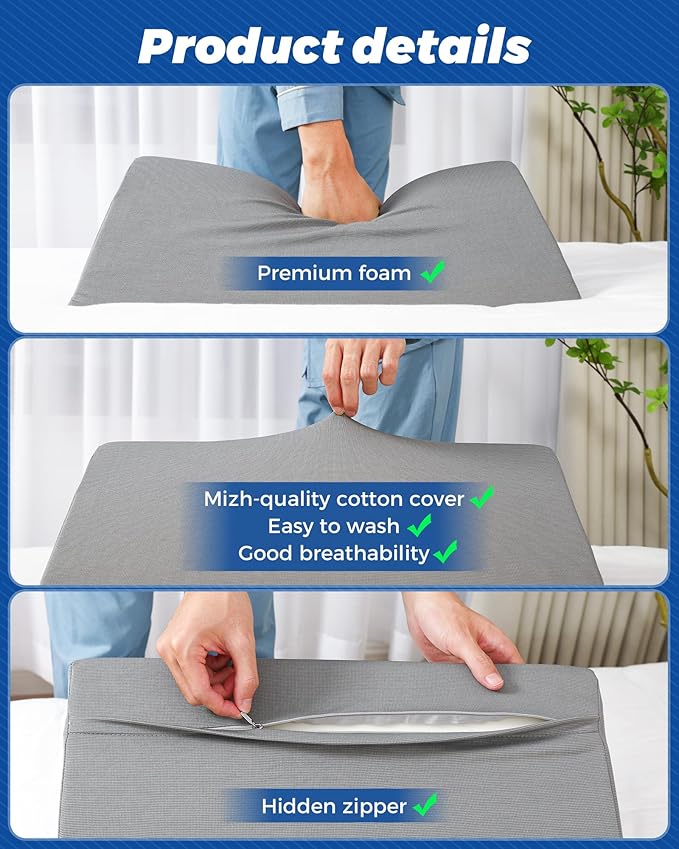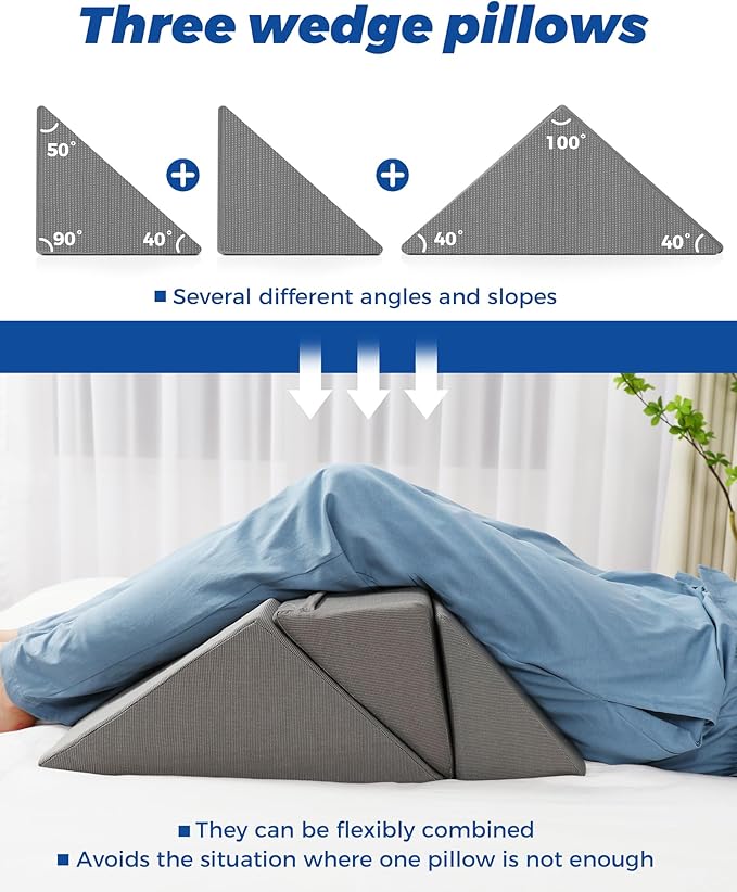- ▶ Three wedge pillows:Our body positioner wedge set includes three wedge pillows with different angles and slopes that can be flexibly combined to provide the most comfortable support for your body. When it comes to home care, you can avoid situations where one pillow is not enough.