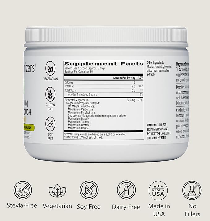- Optimized for Bioavailability: With bioavailable forms, such as Magnesium Citrate, Glycinate, and Malate, the BIOptimizers Magnesium Breakthrough Drink is formulated for effective absorption and whole-body magnesium support