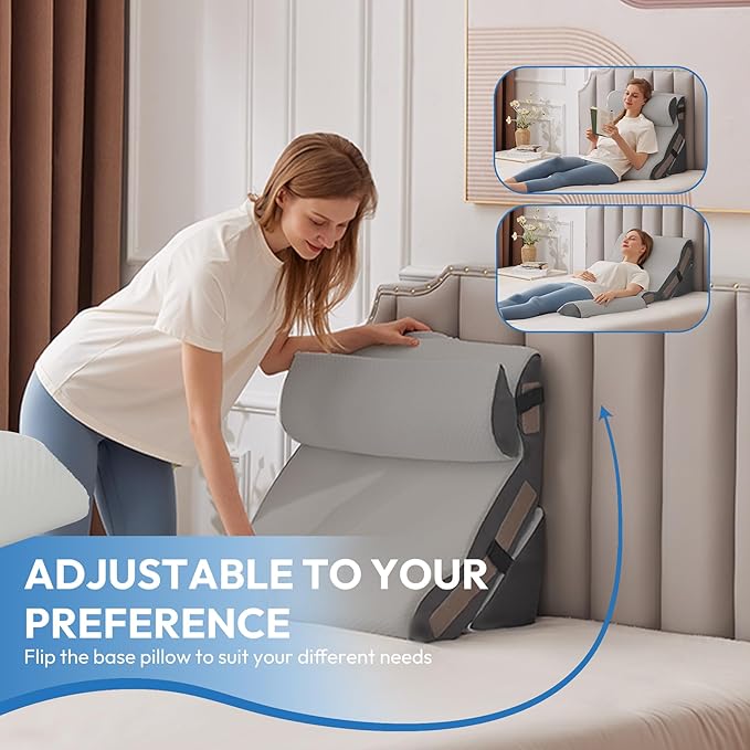 - Ultimate Comfort & Versatility: This bed wedge pillow set offers superior comfort, ideal for post-surgery recovery, acid reflux relief, and snoring reduction. Easily adjust the bed wedge pillow for headboard for reading, sleeping, or leg elevation, tailoring it to your specific needs.