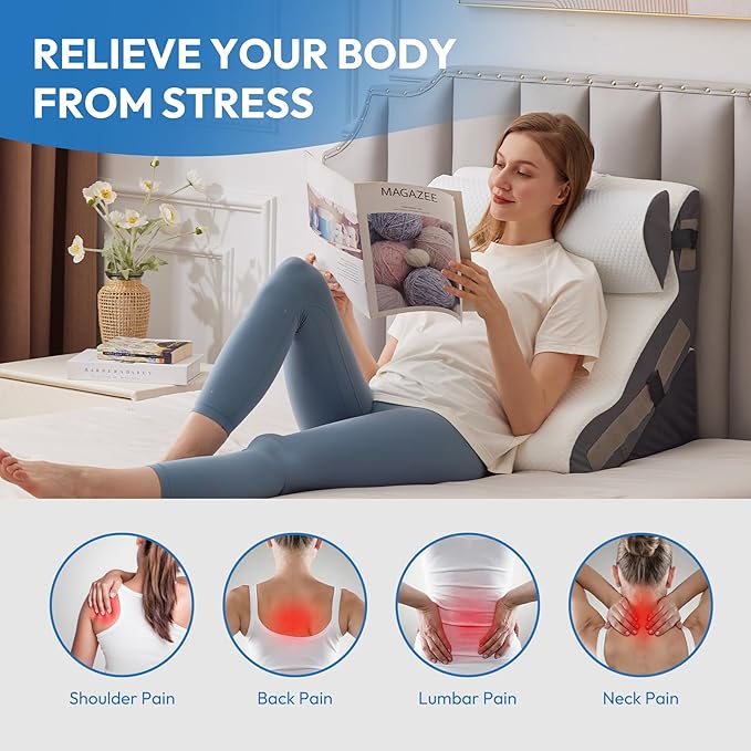 - Pain Relief & Recovery: Designed to alleviate pressure points, our back pillow for bed sitting up improves circulation, aids post-surgery recovery, and helps reduce symptoms of acid reflux, snoring, and GERD, promoting healthier, more restful sleep.