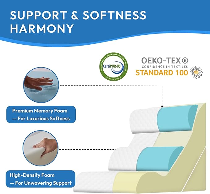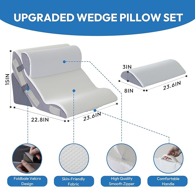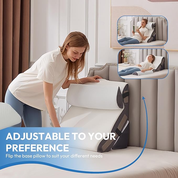 - Ultimate Comfort & Versatility: This bed wedge pillow set offers superior comfort, ideal for post-surgery recovery, acid reflux relief, and snoring reduction. Easily adjust the bed wedge pillow for headboard for reading, sleeping, or leg elevation, tailoring it to your specific needs.