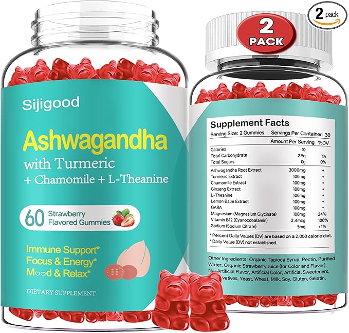 - 10 in One Upgraded Formula: Along with ashwagandha root extract, our per serving 2 ashwagandha gummies are formulated with turmeric, chamomile, L-theanine, lemon balm, GABA, magnesium, sodium, and vitamin B12 to maintain body and mind balance