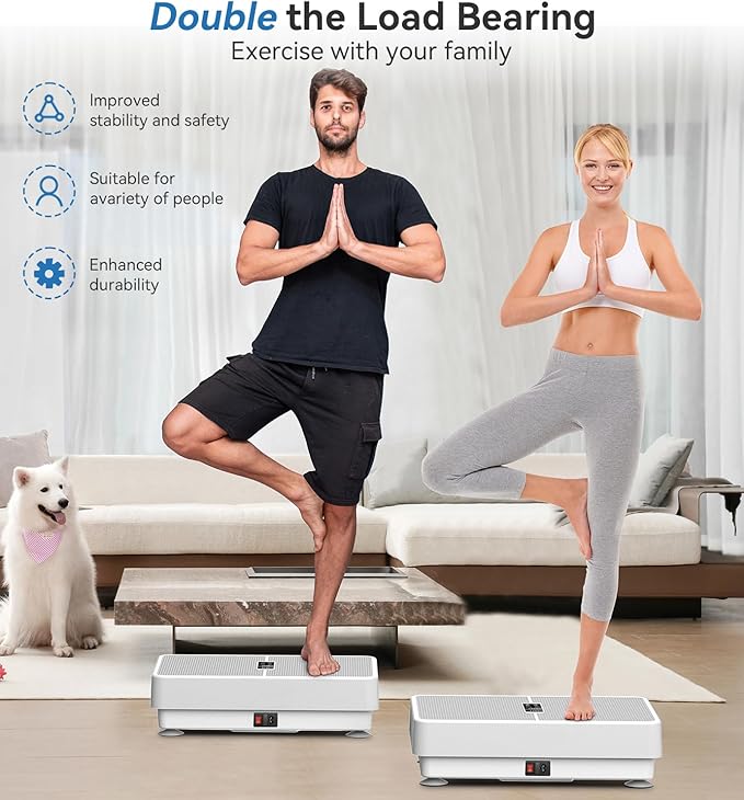 - [Built for All Fitness Levels] Supporting up to 400 lbs (Recommendation 368 lbs), the vibration plate features 5 pre-set modes for beginners and customizable speed options for advanced users, ensuring a personalized workout experience for everyone