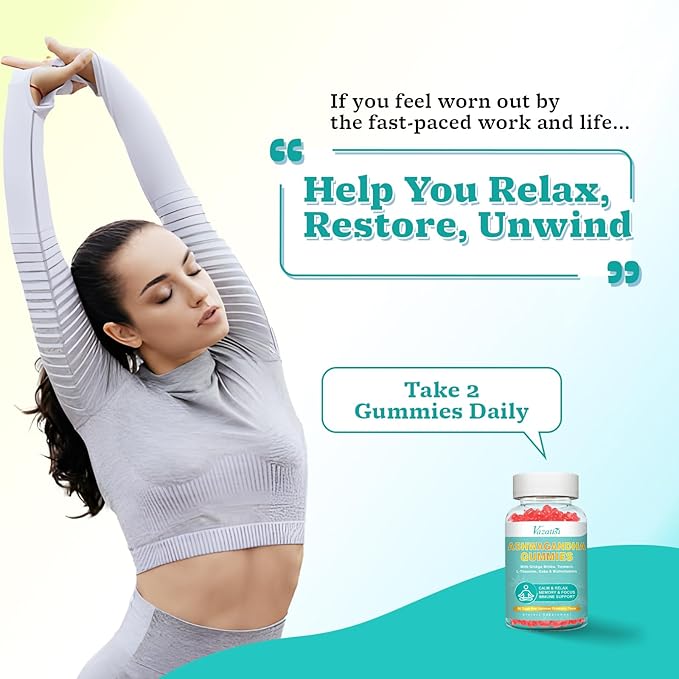 - 14 in 1 The Most Effective Formula: Per serving 2 ashwagandha gummies contain ashwagandha root extract, turmeric, l-theanine, gaba, lemon balm, chamomile, tart cherry powder, passion flower, black pepper, magnesium , vitamin B12, vitamin C and vitamin D