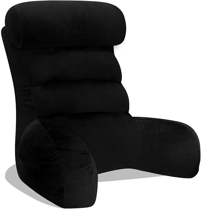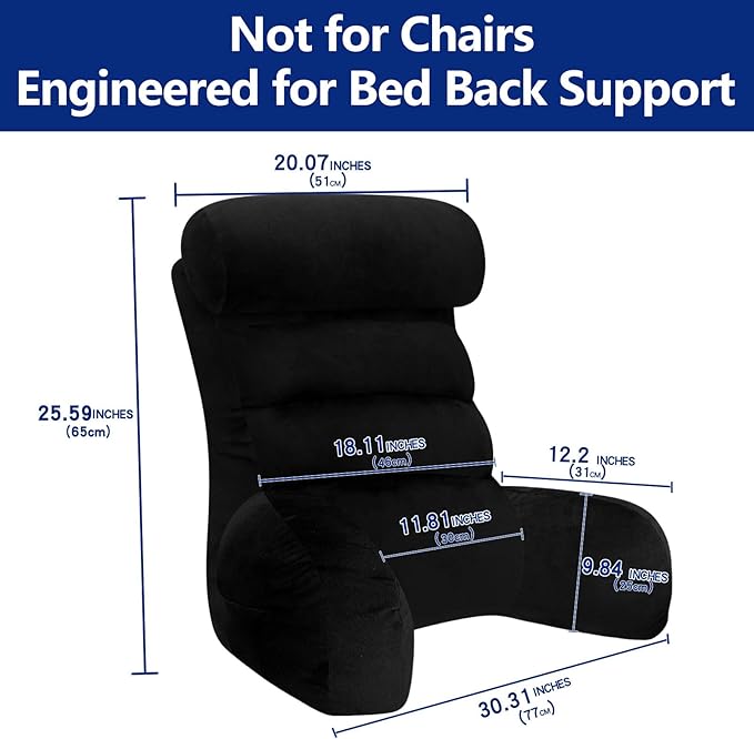 - Tall Bed Pillow for Sitting Up in Bed:This backrest reading pillow is not intended for use on chairs. It measures 25.59 inches tall with 9.84-inch raised armrests to support your back and help keep your arms relaxed while sitting up in bed. ideal for reading, watching TV, or relaxing.Recommended weight range: 462 lbs (smaller builds) / 528 lbs (larger builds). Exceeding this range may affect performance and is not advised