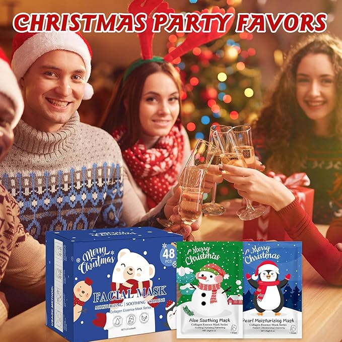 - Perfect for Stocking Stuffers:These Christmas face masks skincare are perfect stocking stuffers,whether it's stuffing them into Christmas stockings or giving them to friends,family or women,they are all ideal Christmas gifts.Sharing these facial mask with friends will leave them a good memory