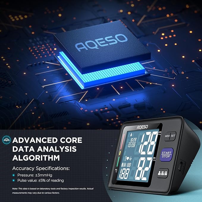 - Accurate & Fast Reading - AQESO automatic blood pressure cuffs use advanced oscillometric technology for accurate, consistent results. The easy-to-read WHO classification bar helps you understand your readings with confidence.