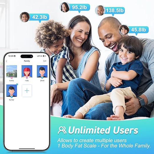 - Unlimited users& shareble:Recording your each measurements,automatic chart generation,monitor your fitness trend at a glance. Support tracking unlimited users, As a home scale,Our smart body scale supported Baby Mode.Be sure to place the bathroom scale on a flat, hard platform for weighing,The digital weight scale is super convenient and the scale is great for bodybuilders, weight loss enthusiasts, and anyone who wants to maintain a healthy lifestyle