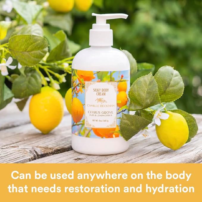 Camille Beckman Citrus Grove Scented Silky Body Cream, Daily Moisturizer for All Skin Types, Non-Greasy Vegan Formula to Nourish and Soften Hands and Body, 13 Ounce