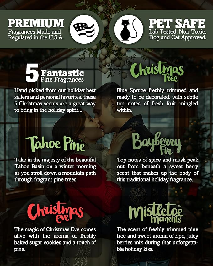 - The perfect festive selection for the holidays featuring 5 of our best selling Christmas pine scents: Christmas Tree, Christmas Eve, and Mistletoe Moments, Bayberry Fir, and Tahoe Pine.