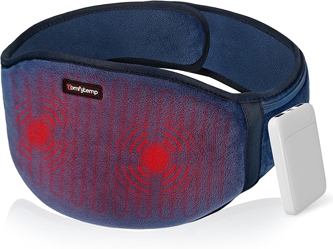 Comfytemp Cordless Portable Heating Pad with Massager for Back Pain Relief for Cramps and Menstrual, Lower Back Massager with Heat,Wearable Heated Waist for Abdominal