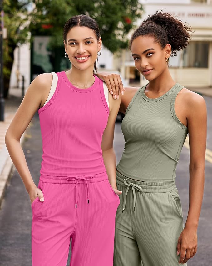 G4Free Workout Tank Tops for Women Slim Fitted Racerback Ribbed Athletic Gym Yoga Tanks Summer Casual