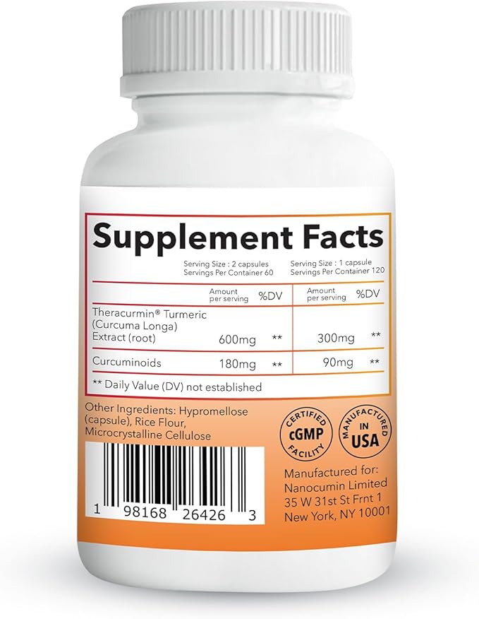 Theracurmin Turmeric Curcumin Supplement, 120 Count, High Absorption Turmeric & Curcumin - Joint Supplement for Men and Women - 42.6X More Bioavailablity