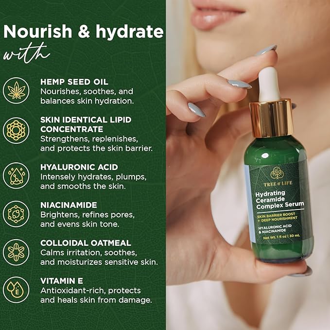 Tree of Life Beauty Ceramide Serum Complex - Skin Barrier Serum with Hemp Seed Oil - Nourishing Barrier Serum with Hyaluronic Acid, Niacinamide and Colloidal Oatmeal - Hydrating Serum for Face 1 Fl Oz