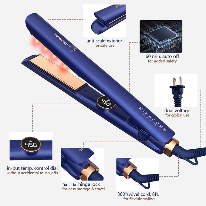 Titanium Flat Iron Hair Straightener | MIRACOMB Professional Straightening Iron Styler with Infrared Light for Straight and Smooth Styles|1" Premium 2 in 1 Styling Tool with Digital Heat Settings