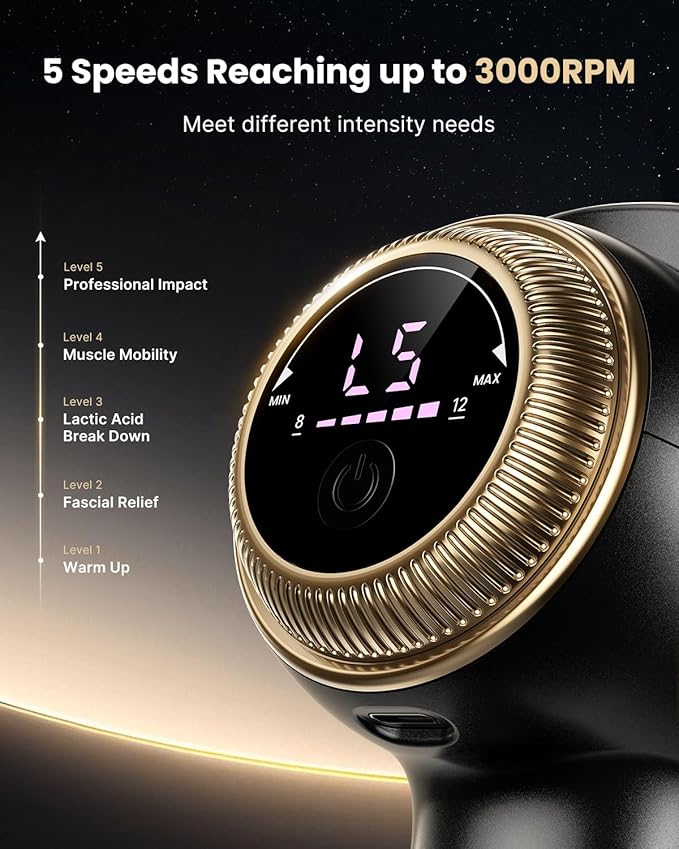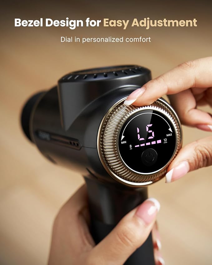 - Amplitude-Adjustable Innovation: This deep tissue massage gun features a bezel design for easy adjustment to offer easy relaxation. With the ability to fine-tune the amplitude from 8mm to 12mm for each body part, ensuring an optimal massage experience