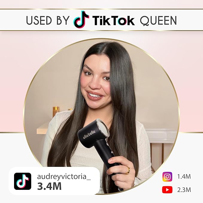 ELLA BELLA® Compact Plasma Hair Dryer, Advanced Plasma Technology Blow Dryer with Digital Display, Rapid Drying, Low Noise, & Luxury Velvet Travel Bag - Includes Diffuser & Nozzle- for All Hair Types