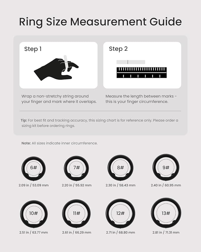 - Get the Perfect Fit: The RENPHO LYNX Smart Ring uses unique sizing —different from standard jewelry rings or other brands.To ensure accuracy, always purchasing and measure your size with the official RENPHO Sizing Kit before buying LYNX Smart Ring.