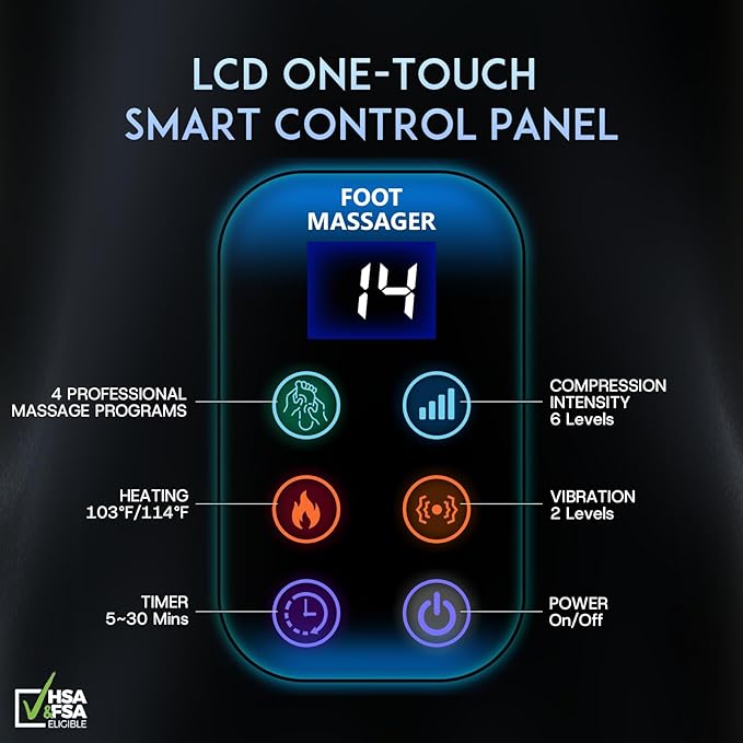 - User-Friendly LCD Touch Panel:Simplify your massage experience with the intuitive LCD touch panel on this shiatsu foot massager, allowing for easy adjustments to settings, intensity levels, and modes. Its sleek design fits effortlessly into your living space, and the detachable foot covers ensure a clean and hygienic experience every time, making it a perfect foot massager for plantar fasciitis and daily use.