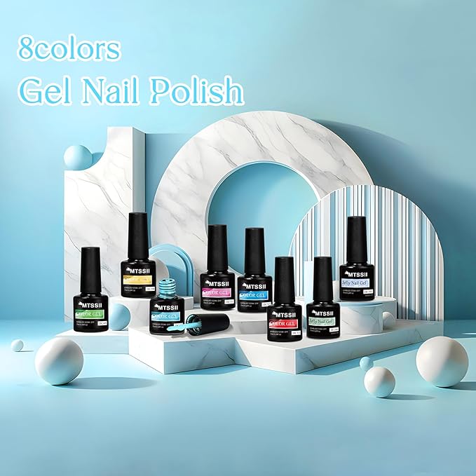 - 8Pcs Neon Collection:The set will likely include a variety of bright neon shades like pink, red, yellow, green and blue. Clear nails are slightly translucent, you'll be dizzy with delight wearing this jelly gel nail polish. Apply one layer, two layers and three layers can get different effects.