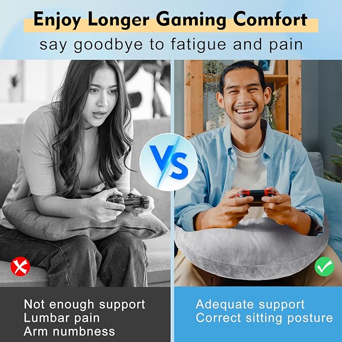 - 【VERSATILE FOR MULTIPLE ACTIVITIES】Perfect for gaming on consoles or mobile devices, reading books or tablets, laptop work, crocheting, knitting, nursing, or as arm support during recovery. Use it on beds, sofas, floors or chairs. The compact design makes it portable between rooms while providing substantial support wherever you need it.