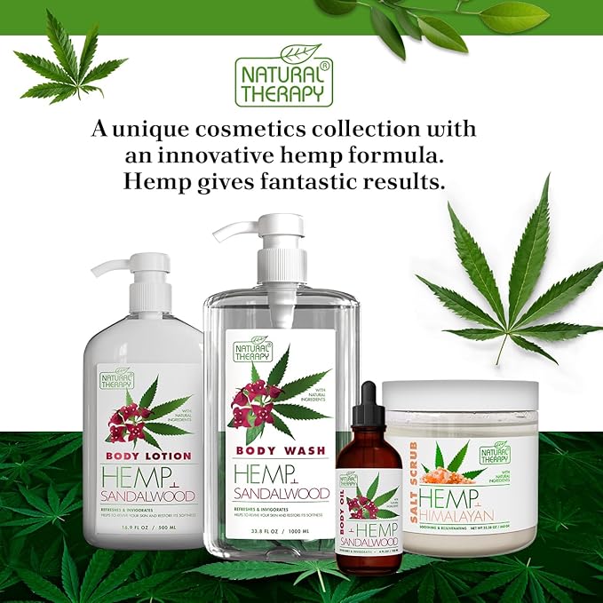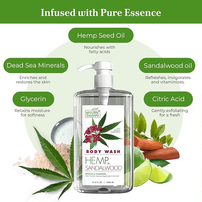 Natural Therapy Body Wash for Women and Men with Hemp & Sandalwood Oils - Shower Gel Cleanses and Moisturizing Skin - With Dead Sea Minerals Nourish for Body, Pack of 2 (67.6 fl.oz)