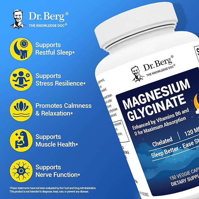 Dr. Berg Maximum Strength 4-in-1 Chelated Magnesium Glycinate with Clean, Potent & Pure Ingredients | 4X Lab-Tested & Verified | USA Formulated Magnesium Supplement Capsules | 150 Capsules
