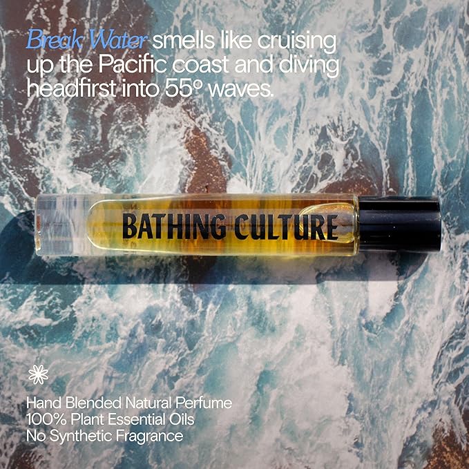 Bathing Culture, Organic Roll On Perfume Oil, Vegan Perfume Oils for Women, Long Lasting, Body Oils for Women, Natural, Clean, Vegan Personal Care, Break Water Scent, 0.3 fl oz, 9 ml