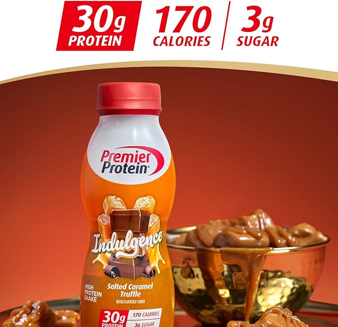 Premier Protein Indulgence Protein Shake, 30g Protein, 3g Sugar, Salted Caramel Truffle, 11.5 fl oz, Pack of 12