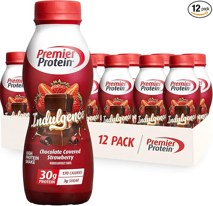Premier Protein Indulgence Protein Shake, 30g Protein, 3g Sugar, Chocolate Covered Strawberry, 11.5 fl oz, Pack of 12