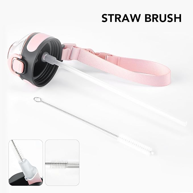- Humanized Design: The one-hand operation button allows for easy access to water. Highly suitable for boys and girls, and all ages. The flip-top lid of the insulated bottle is used a secure lock, making it dust-free and leak-proof. The included straw brush makes maintaining your bottle's cleanliness uncomplicated and efficient.