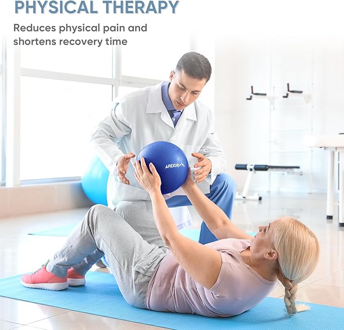 - [VERSATILE] This small yoga ball is suitable for various exercises, including yoga, Pilates, barre, strength training, core workouts, stretching, balance training, ab workout, and physical therapy. It targets various muscle groups such as the core, posture, and back muscles. In addition, it aids in recovery from issues related to the hip, knee, or sciatica