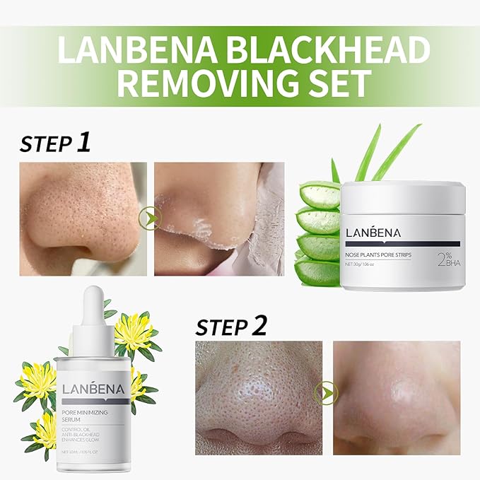 - ✅【Unbelievable Result!】- Use this LANBENA Nose Strips, say goodbye to clogged pores and hello to refreshed, rejuvenated skin! Used in conjunction with LANBENA Pore Shrinking Serum to hydrate and retain moisture in the skin, shrink pores and repair skin damageThe Blackhead Remove Set is the top-rated solution for your nose, providing the ultimate blackhead removal tool.