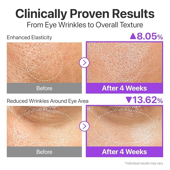 - [CLINICALLY TESTED] Clinically proven to reduce 11 types of wrinkles (forehead lines, frown lines, crow’s feet, tear troughs, bunny lines, lip lines, smile lines, marionette lines, mouth frown, chin wrinkles, and neck lines) in just 4 weeks.