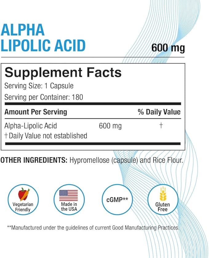 - ✅ ANTIOXIDANT SUPPORT: Alpha Lipoic Acid ( ALA ) protects normal cell function by scavenging free radicals and provide protection to the cells.