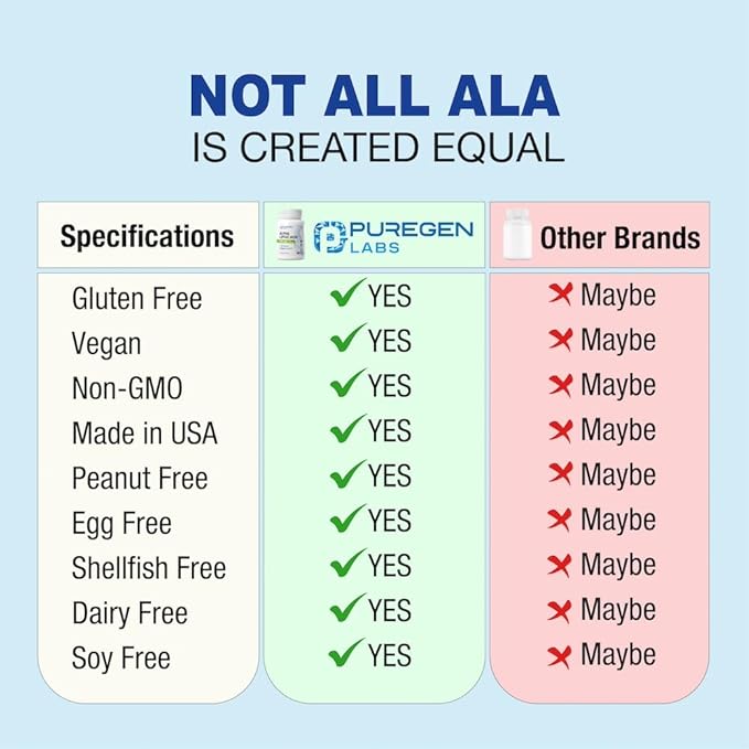 - ✅ HIGTH POTENCY FORMULA: Puregen Labs Alpha Lipoic Acid ( ALA ) provides 600 mg per capsule not per serving like some other brands.