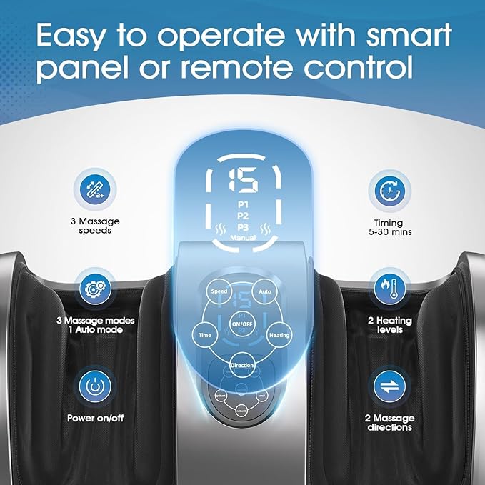 - ๐ Easy to Use - This massager comes with a remote control for added convenience, making it especially helpful for those with mobility challenges. Its intuitive operation is easy to understand. The compact design allows for easy storage in smaller spaces, while the breathable foot sleeves are detachable and zip off for convenient cleaning, ensuring a hygienic massage experience