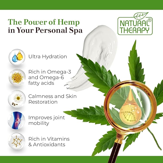 - Nourishing Formula - Natural Therapy Body Lotion infused with Hemp and Coconut Oils penetrates deeply, restoring skin’s hydration and elasticity.