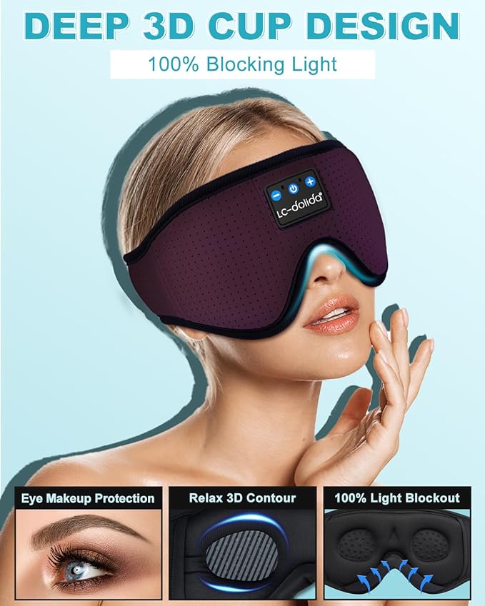 - 【Upgraded 3D Contour Design & No Eye Pressure】- Our sleep mask with bluetooth headphones based on ergonomics.Our eyes can move freely with the 3D contoured bluetooth sleep mask. With no pressure on eyes, the bluetooth eye mask can bring you a comfortable and long-lasting sleep.The bluetooth sleep eye mask is the perfect Sleeping Headphones for side sleepers, choose LC-dolida sleeping bluetooth headphones, fall asleep fast, stay asleep and have a sweet dream