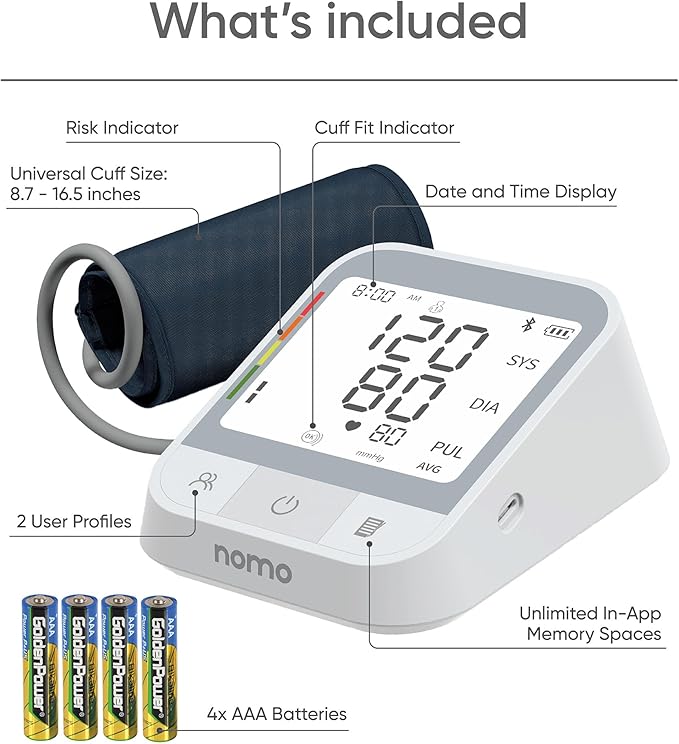 - DUAL-USER SUPPORT + UNLIMITED APP STORAGE: Stores 199 readings per user on-device, with unlimited memory available when synced to the Nomo app. Perfect for households with multiple users or tracking over time.