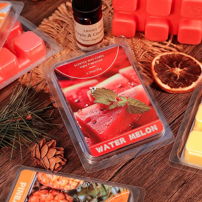 - Watermelon Scented Wax Cubes: Each pack weighs 1.25 oz (35 g) and contains 6 cubes. Scented wax cubes offer a fresh, sweet fragrance that fills your space with a fruity and exotic aroma