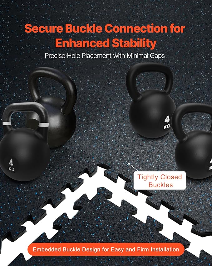 - 48 Square Feet Coverage: The gym mats include 12 tiles and 24 borders, covering 48 sq ft. The workout mats can reduce the noise effectively, allowing you to work out upstairs without disturbing those below, making your fitness routine neighbor-friendly.