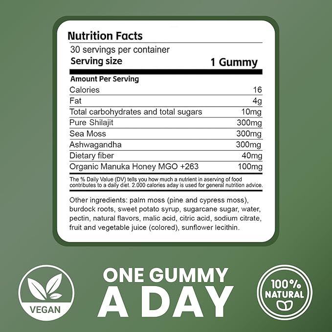 - We craft our proven himalayan natural shilajit gummies in their most authentic form with a scientific formulation of shilajit sea moss, and ashwagandha KSM 66 all 100% free from impurities/contaminants, chemicals, artificial additives and garbage fillers!