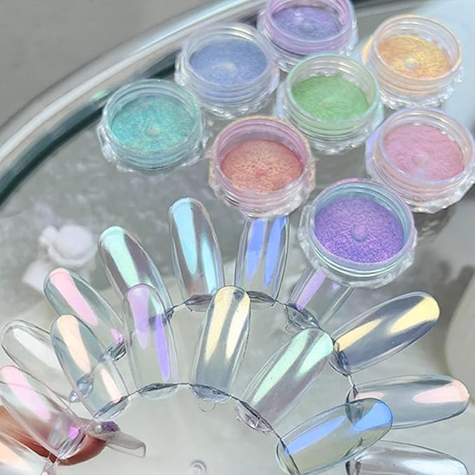 Holographic Mirror White Pearl Chrome Nail Powder Gold Effect Pure Metallic Dust Sequins UV Gel Nail Chrome Powder Pigment for Nail Art Decoration (Multicolour)