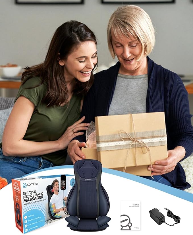 - Fits Most Chairs, Perfect Gift Choice - COMFIER back massager for back pain deep issue is compatible with most chairs, including sofas, dining chairs, and office chairs. This seat massager also makes an ideal gift for yourself, family, or friends. Whether you want to enhance your comfort or show someone you care, this back masasger with heat will offers a thoughtful and soothing massage experience for your loved ones.