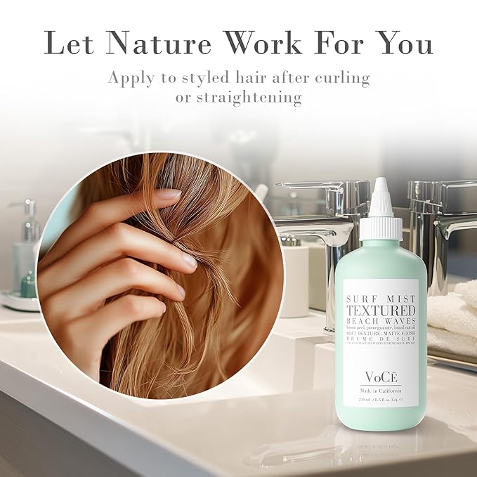 VoCÊ Haircare Natural Surf Mist Texture Spray | Effortless Waves, Light Hold, Vegan, Cruelty-Free & Non-Toxic Haircare with Brazil Nut Oil, Lemon Peel & Pomegranate (8.5 oz | 250 ml)